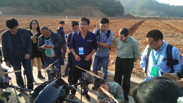 轉接到下午,常鋒無人機在龍崗花古坪水庫火龍果園進行了飛行演示。常鋒無人機團隊不僅在現場操作了植保無人機進行仿地形飛行,